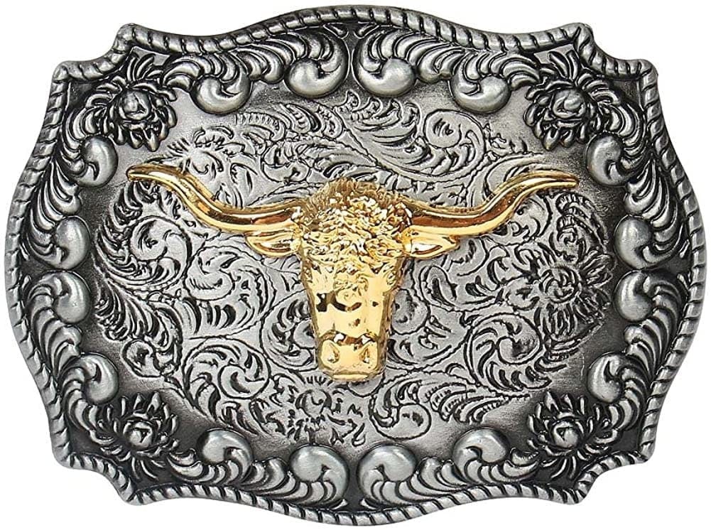 Hebilla de cinturón estilo western con cuernos largos de toro