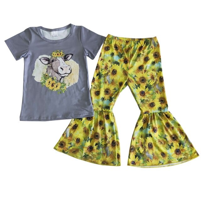 Camiseta con estampado de letras y sombrero de toro occidental con estampado de vaquero y campana de vaca para niños pequeños y niñas