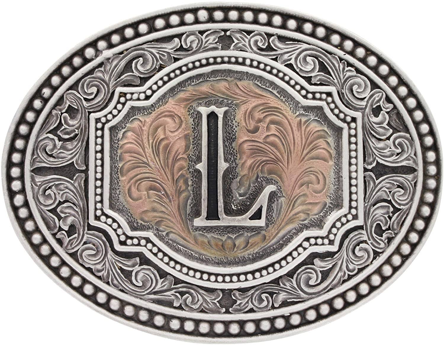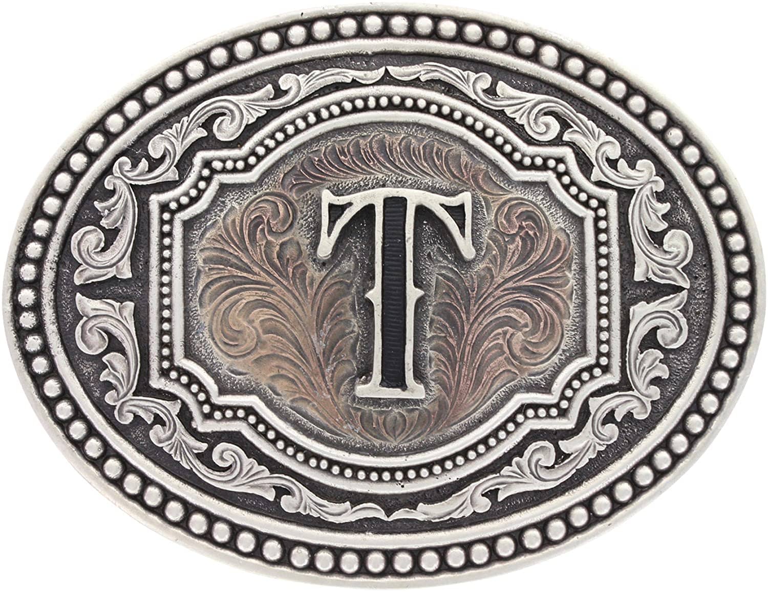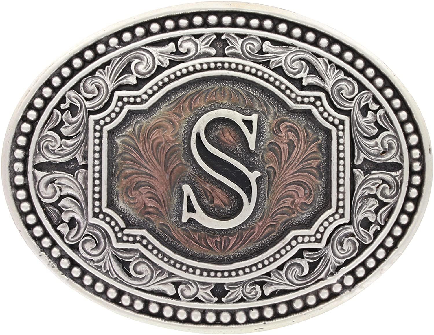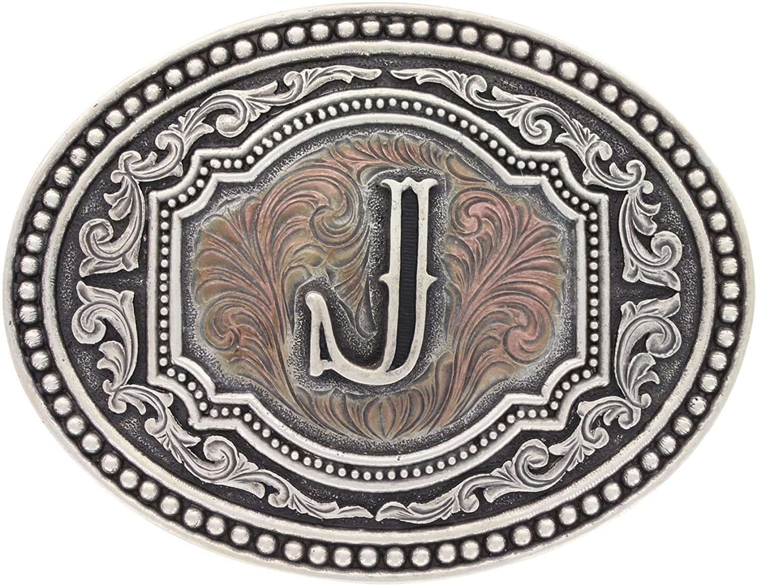 Hebilla de cinturón ovalada estilo western con actitud de camafeo en dos tonos y iniciales para hombre de Montana Silversmiths