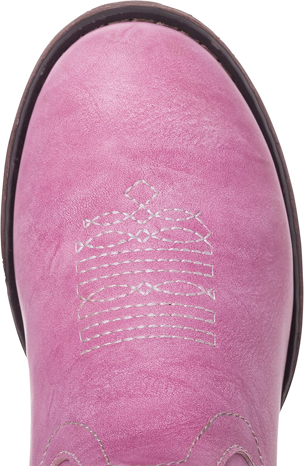 - ROUND TOE PROFILE – Round Toe Western Cowboy Boot for kids with long wearing rubber sole, approximate 1.5 inch heel and 9 inch shaft opening. Toddler sizes (only) have inside side zipper for easy on and off and a 1 inch heel. Cowboy boots fits true to size.