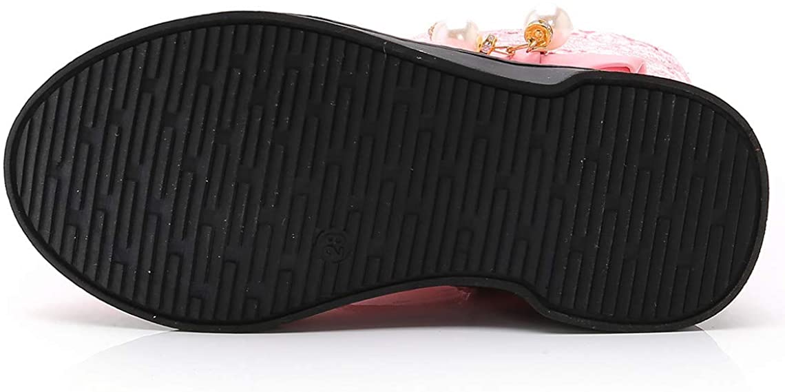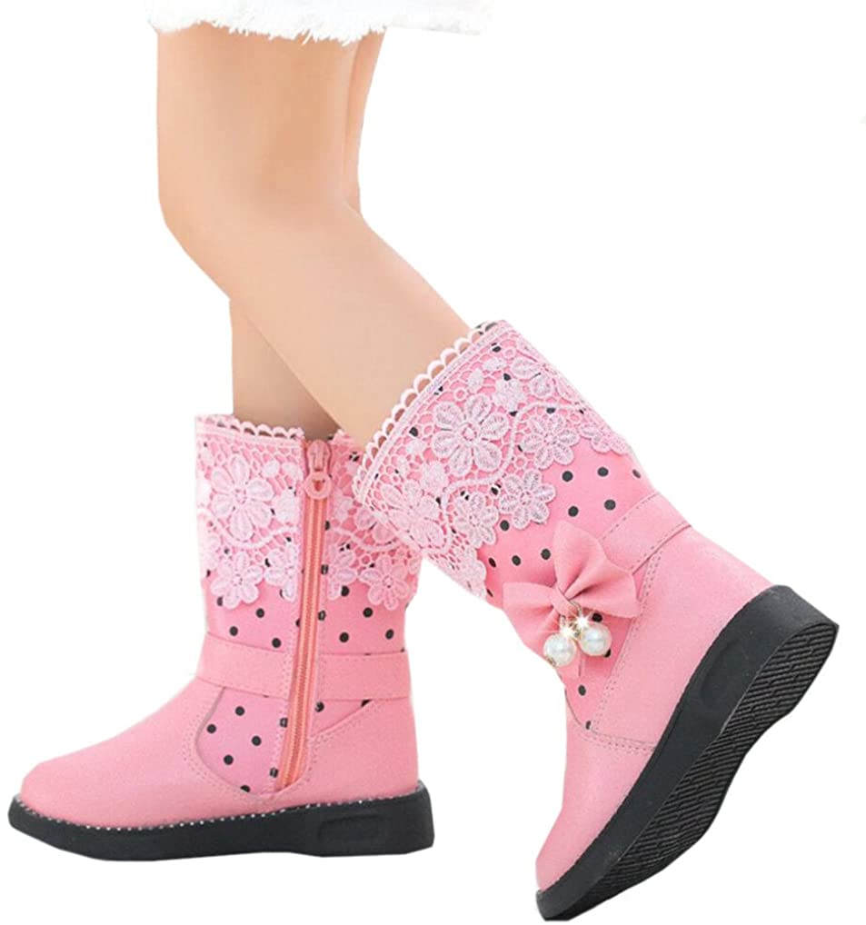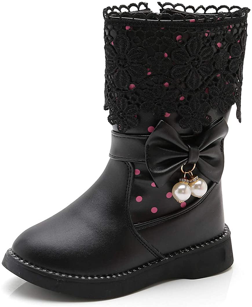 DADAWEN Girls' Waterproof Lace Bowknot Side Zipper Fur Winter Boots for Toddler to Big Kid, 9 Toddler, Black