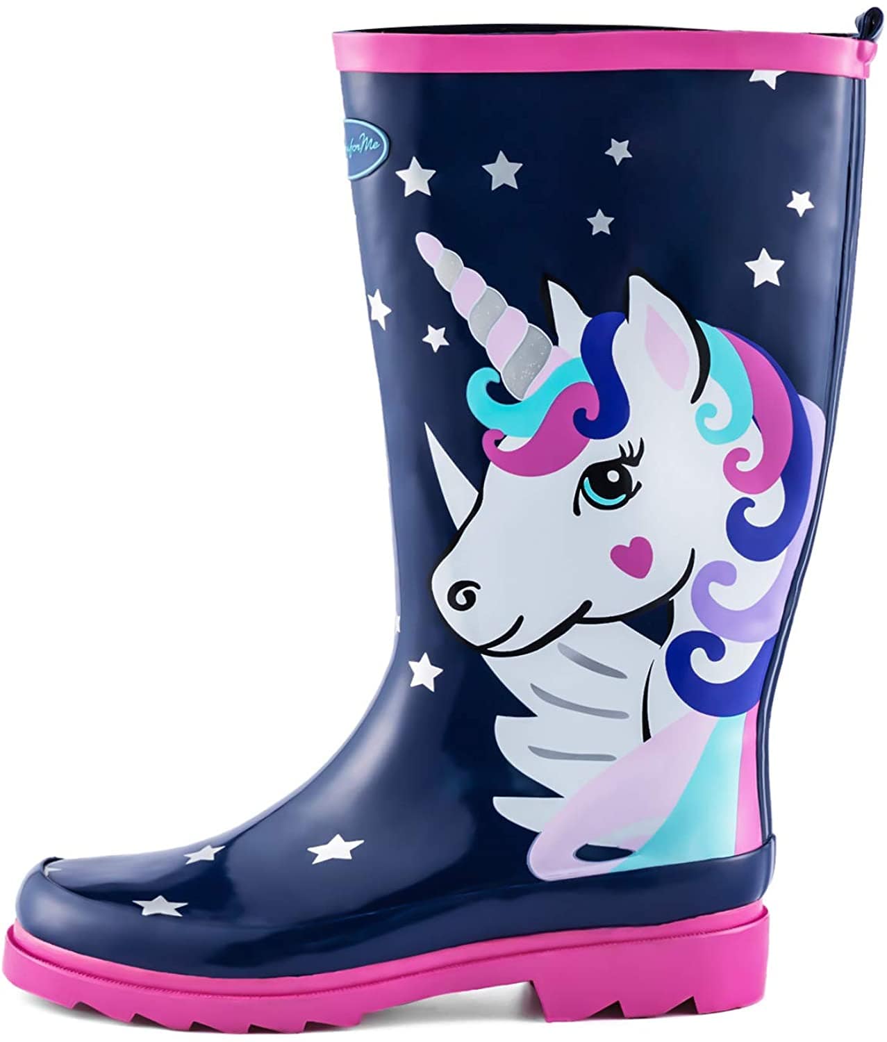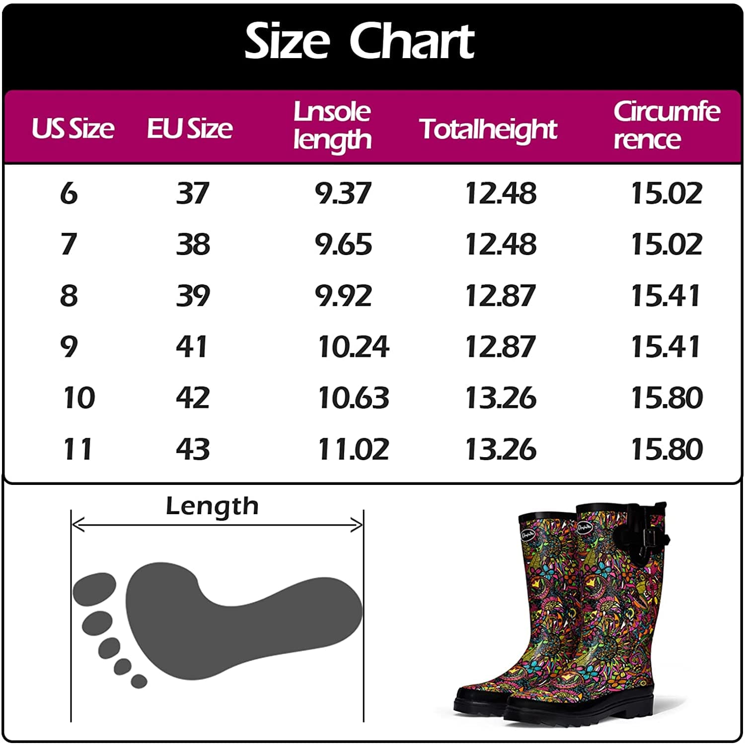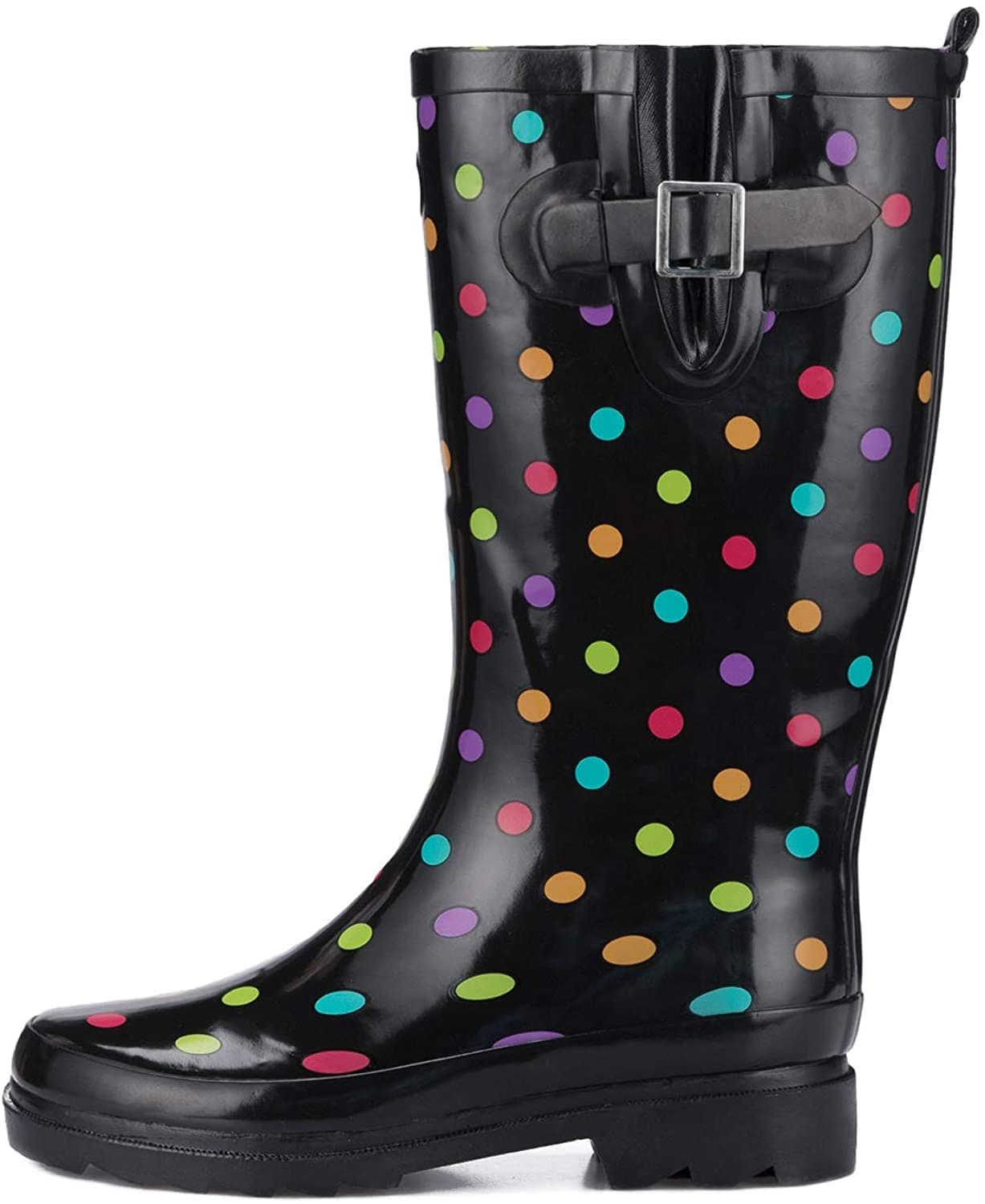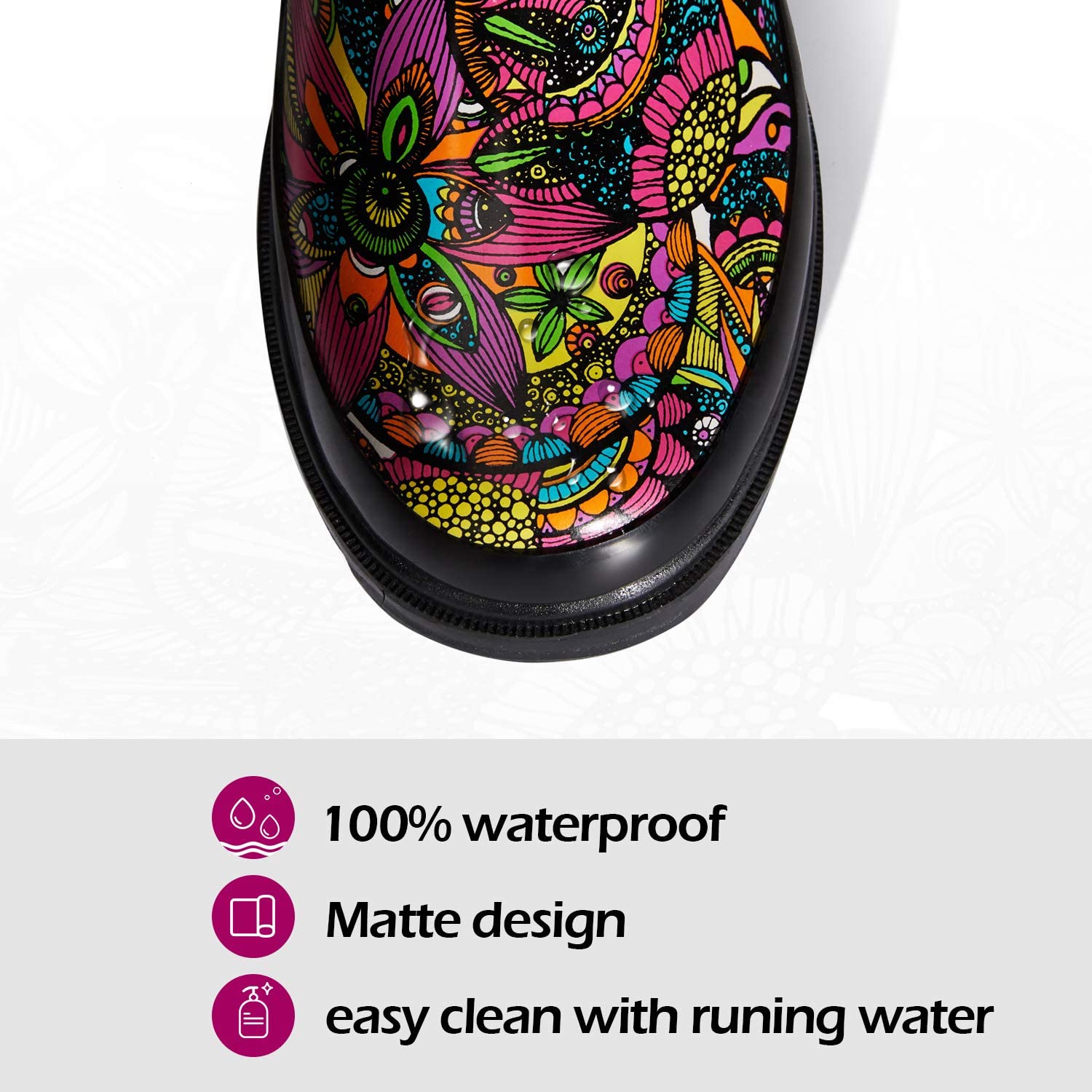 K Komforme Women Rain Boots With Non Slip Sole, Waterproof And Fashion Patterns , 10, Classic Black