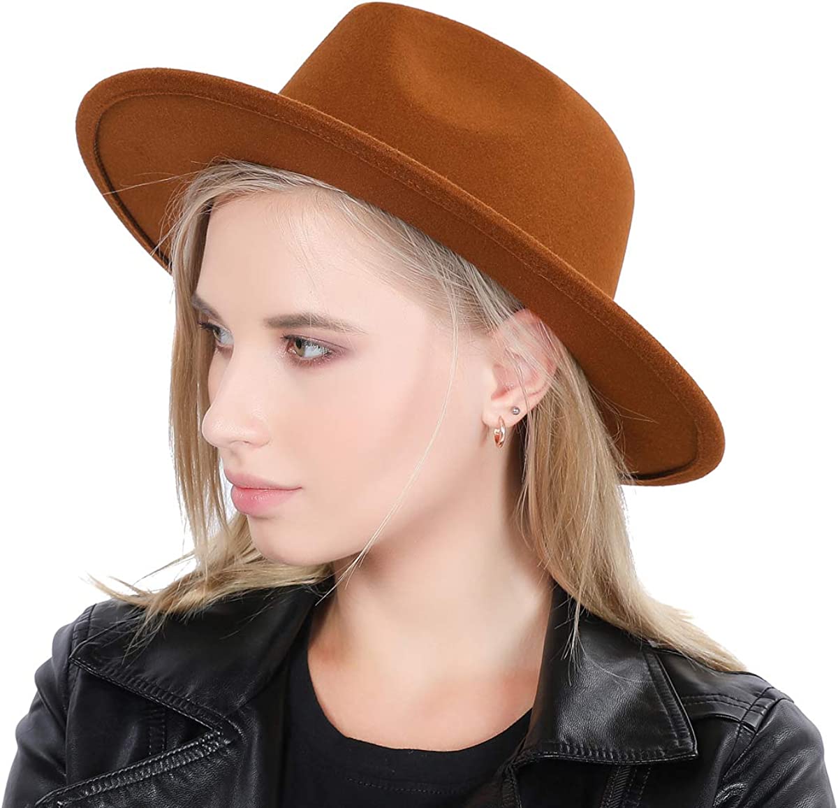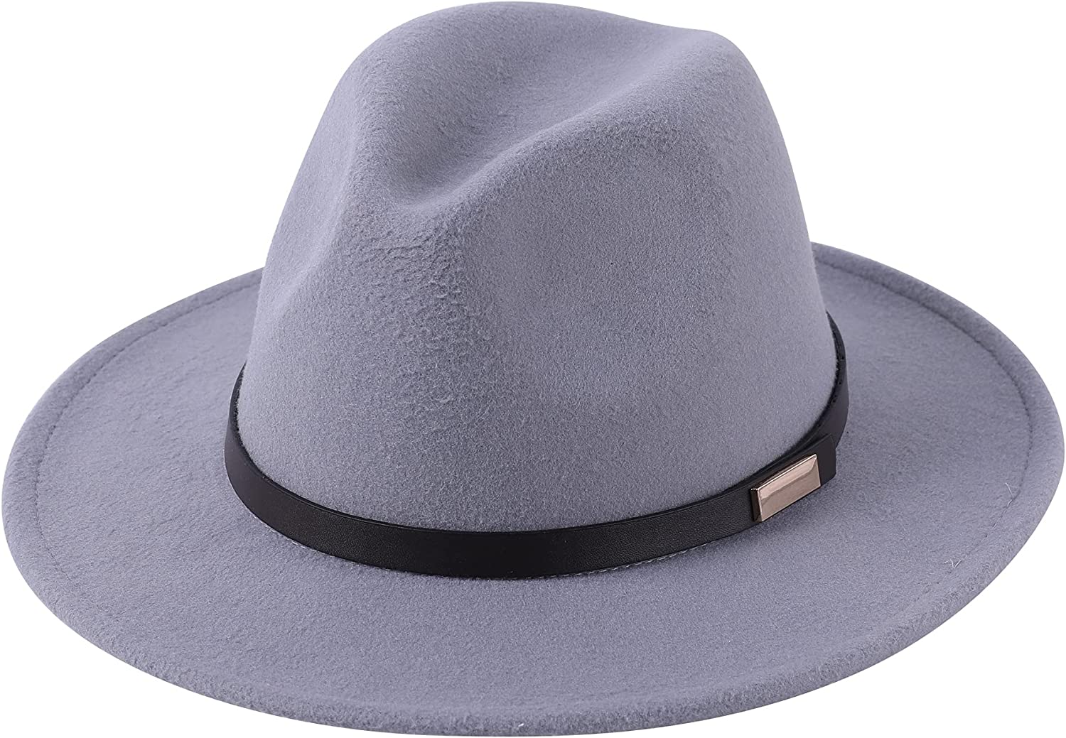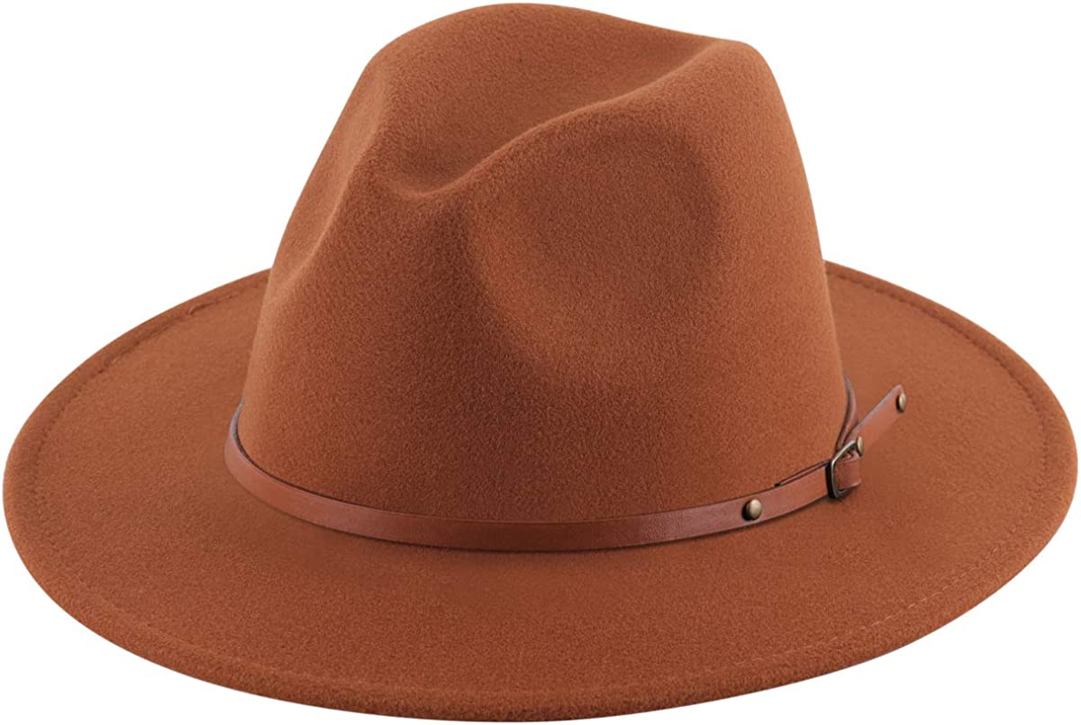 Lanzom Women's Retro Wide Brim Wool Fedora with Belt Buckle, beige, One Size