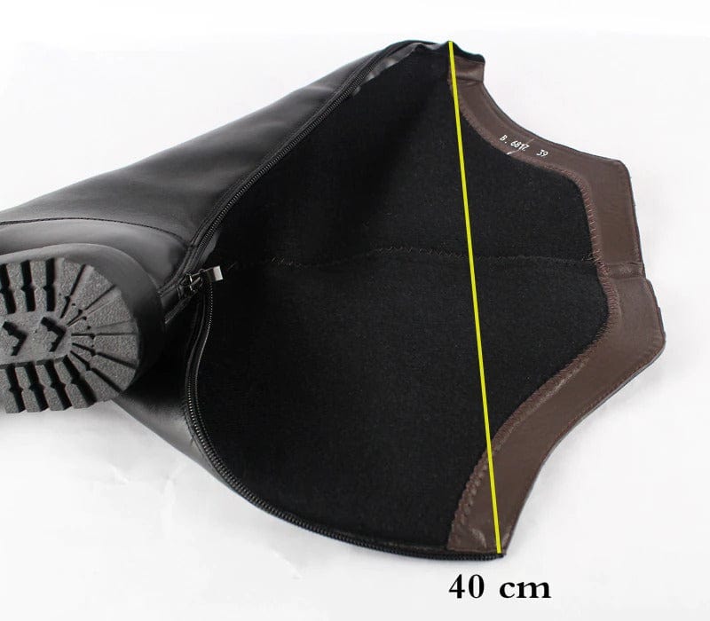 Men's luxury black leather boots in large sizes, Black with fur, 10