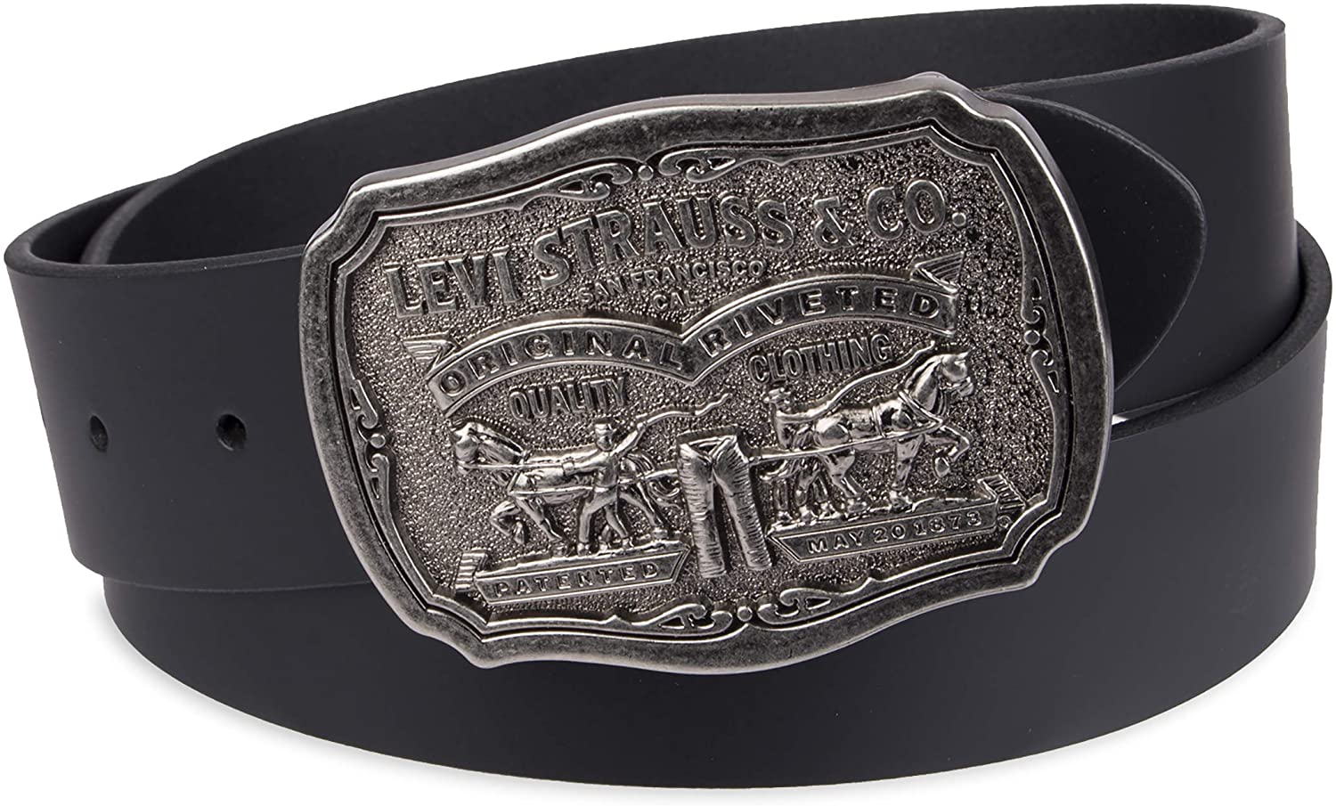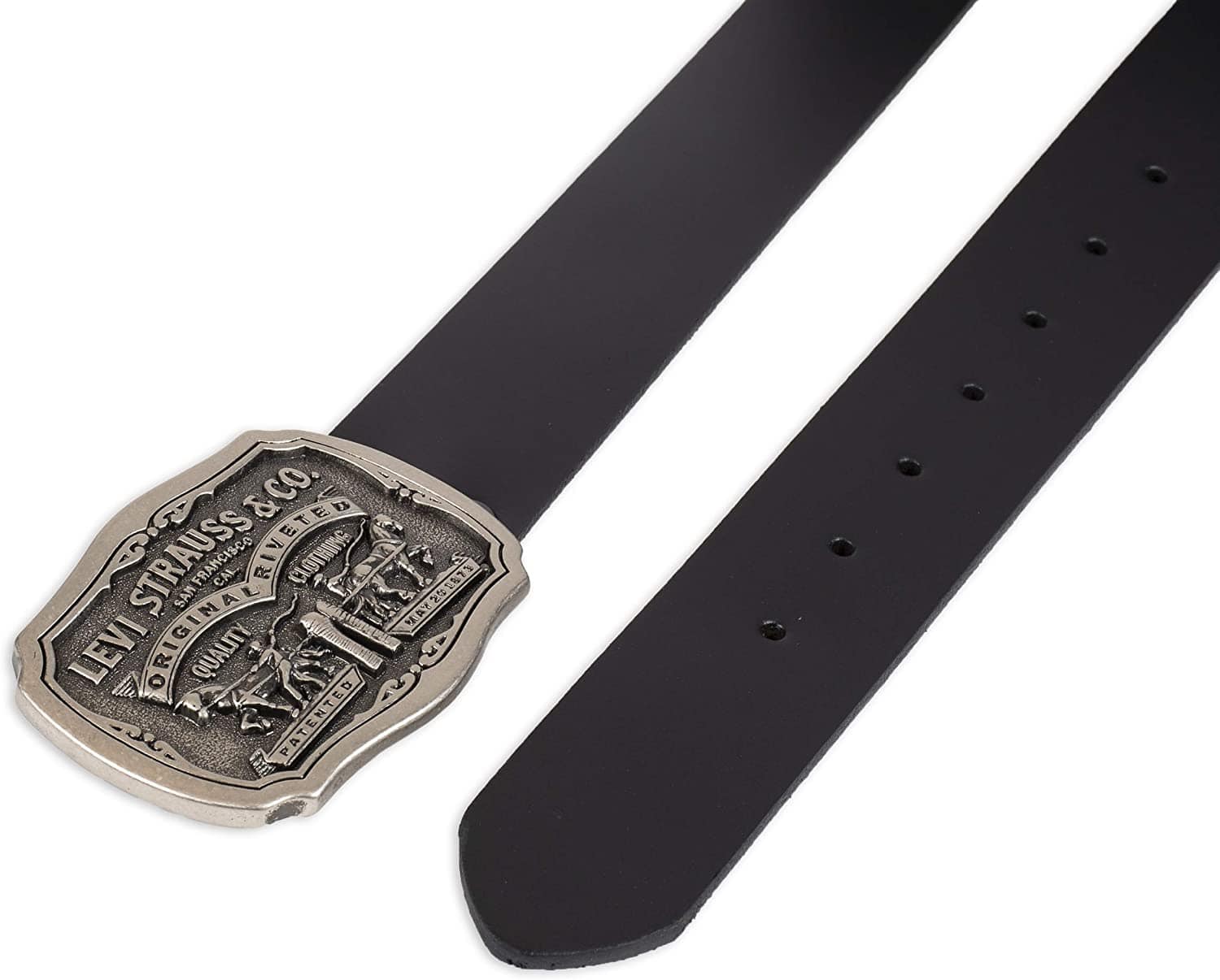 - UNIQUE FEATURES: Because we are proud of our iconic two horses logo, we engraved it on a silver plaque so you can also wear it with proud. This plaque buckle says it all about Levi’s history. The snap closure it is also unique as it features a rivet.