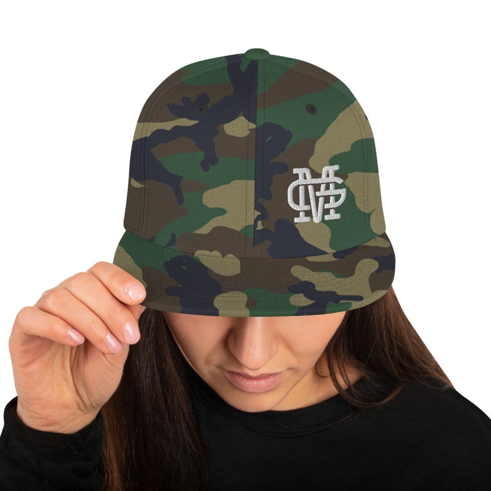 This hat has a structured fit and flat brim, and is complete with an adjustable snapback closure. The undervisor is gray for a classic look that offers shade. Whether you're looking for a fashionable sports hat for your outdoor adventures, workout routines or simply for adding a finishing touch to your casual outfits, this cap is ideal for all. Its available in a variety of colors, ranging from neutrals to vibrant hues. • 80% acrylic, 20% wool • Green Camo is 60% cotton, 40% polyester • Structured, 6 panel, high profile • 6 embroidered eyelets • Plastic snap closure • Green undervisor • Head circumference: 21⅝″–23⅝″ (54.9 cm–60 cm) • Blank product sourced from Vietnam or Bangladesh