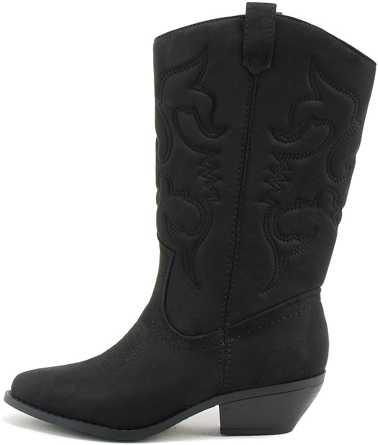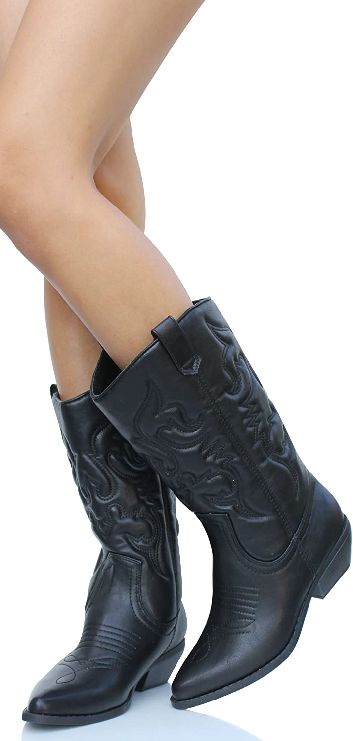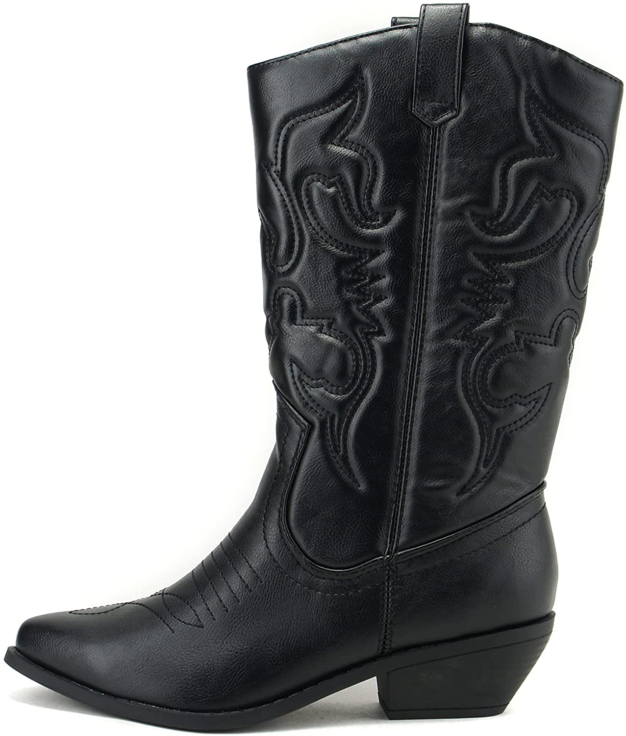 Soda Women's Red Reno Western Cowboy Pointed Toe Knee High Pull On Tabs Boots, 5.5, All white