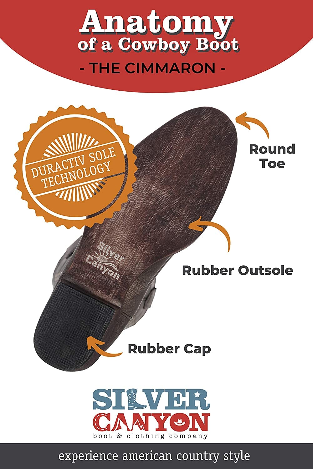 - ROUND TOE PROFILE – Round Toe Western Cowboy Boot with traditional western heel and long wearing rubber sole
